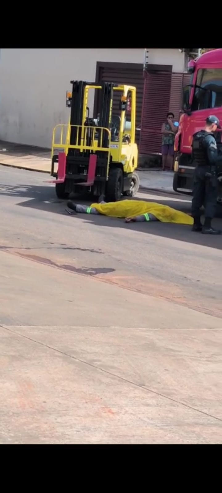 possivelmente essa empilhadeira estaria a serviço de uma distribuidora de