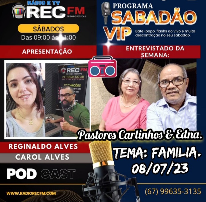Não perca nosso Podcast que agora sera no 1º Sábado de cada mês aqui na Rádio REC Site, APP e Live.
