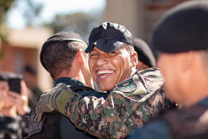 O Cabo Gabriel que é lotado há 9 anos na Força Tática do 5º BPM e estes estiveram presentes em peso para comemorar a conclusão do curso que foi realizado no Quartel do Comando Geral da PMMS. Toda a Equipe também recepcionaram o novo caveira na entrada de Coxim e escoltaram pelas principais ruas e avenidas da cidade com direito a sirene, giroflex e buzinaço.