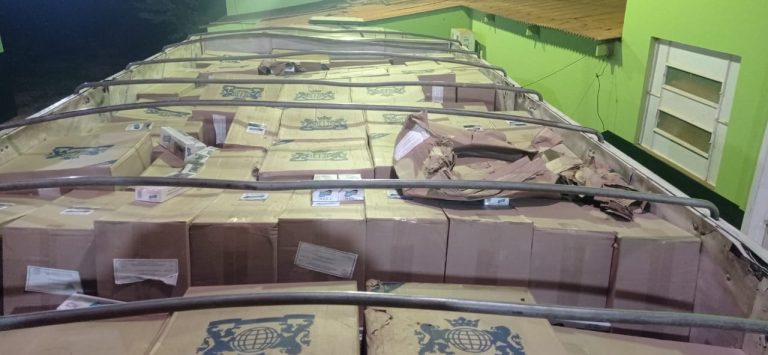 madrugada de hoje (04/06), uma carreta carregada de cigarros contrabandeados em