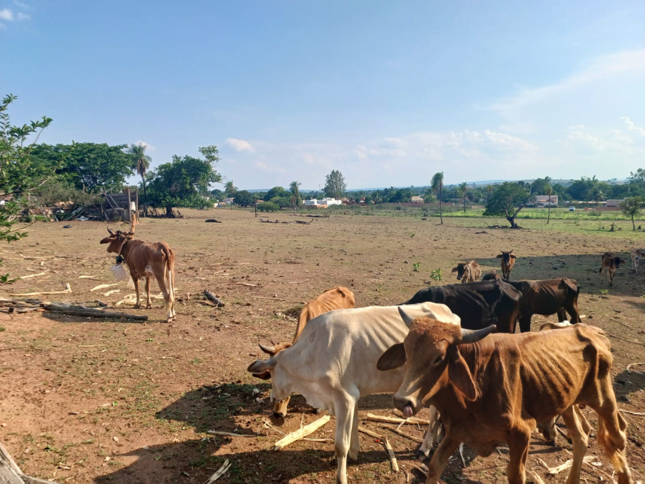 Foi constatado que a propriedade não possui nenhum tipo de pastagem, tanto nativa quanto plantada e que o proprietário não tomou as devidas medidas em época de escassez de Chuva. Também foi verificado que os cochos estavam secos/vazios, apesar do mesmo informar que fornece alimentação.