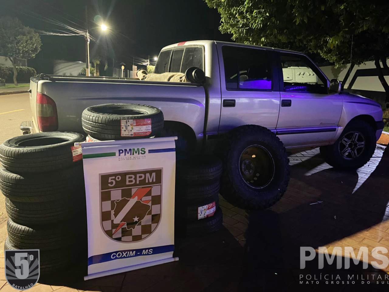 Na madrugada domingo (10/03), a Polícia Militar realizou uma operação que resultou na prisão de um homem por descaminho e na apreensão de 22 pneus.