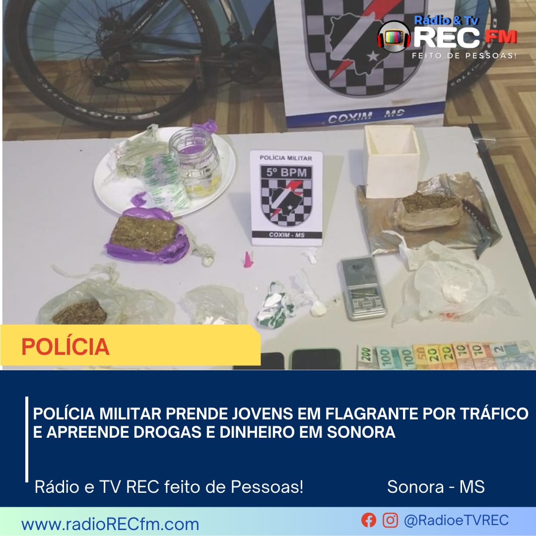jovens, de 19 e 21 anos, por tráfico de drogas e apreendeu dinheiro e drogas em