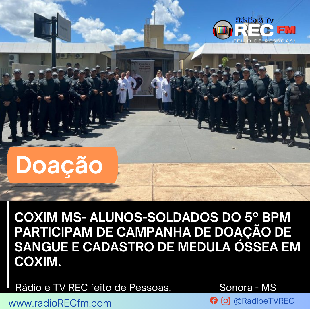 Na manhã desta segunda-feira (16/12), os 41 alunos-soldados do 5º Batalhão da Polícia Militar deram um exemplo de solidariedade e responsabilidade social ao aderirem a uma campanha de doação de sangue e cadastro no banco nacional de medula óssea em Coxim.
