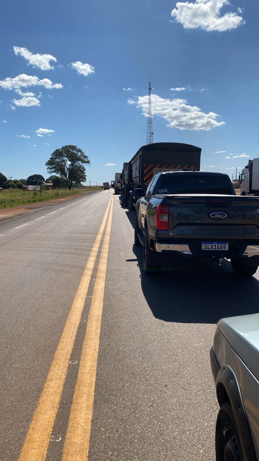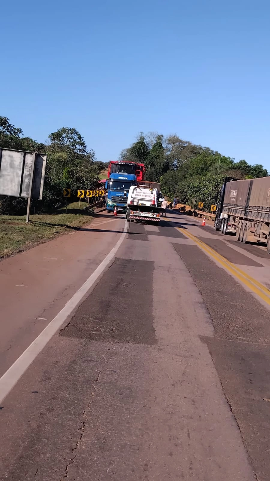 A BR ficou completamente interditada por cerca de três horas, causando congestionamento de 9 km nos dois sentidos. Há pouco, o trânsito foi liberado no sistema pare-e-siga.