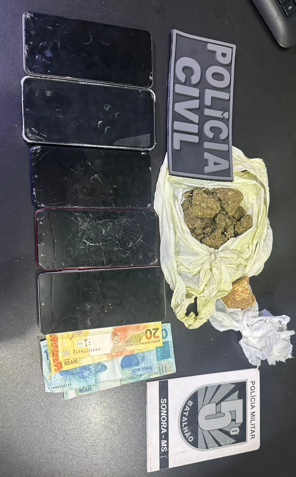 No local a Polícia Civil e Militar, encontraram o alvo, conhecido como Cuiabano. Foi encontrado pasta base de cocaina e maconha além de certa quantia em dinheiro.