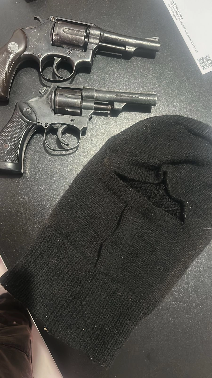 Todos foram rendidos e no local, dois revólveres foram localizados , sendo um calibre 32 e um calibre 38.